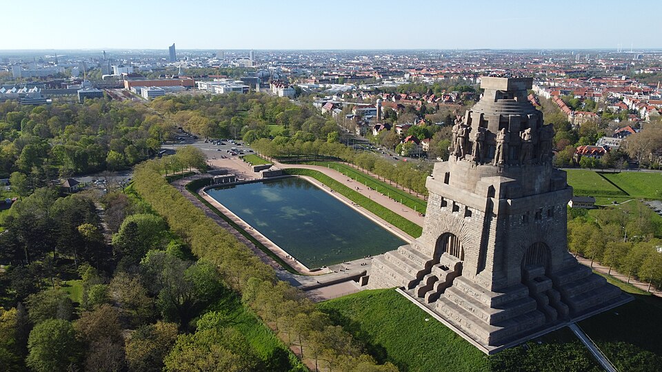 Völkerschlachtdenkmal von schräg hinten (CC-BY-SA 4.0 von Wikipedia User Realpixelstreet)