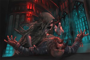 Noch bevor man sich noch weitere Gedanken machen konnte, glühte die Lichtung plötzlich in einem grün-kränklichen Licht. Eine genaue Quelle konnte nicht ausgemacht werden, doch schien das Licht von Herzschlag zu Herzschlag “näher” zu kommen. Man machte eine der Kutschen bereit und entfernte sich vom Ort des Geschehens. Noch wusste man zu wenig um klar handeln zu können. Ein Rückzug war derzeit die beste Option! Man raste durch den nächtlichen Wald und konnte das fremdartige Licht stets hinter sich lassen. Doch sollte dies nicht genug gewesen sein! Bereits einige Zeit später begegnete man auf dem Waldweg merkwürdigen Gestalten. Zu Beginn hätte man sie für verwahrloste Kinder halten können. Die Gestalten hatten jedoch keine Augen- an deren Stellen qualmte dunkler Rauch hervor! Ein Ausbruch zur Seite war für die Männer keine Option, weswegen man die eindeutig bösen Kreaturen den Kampf erklärte!