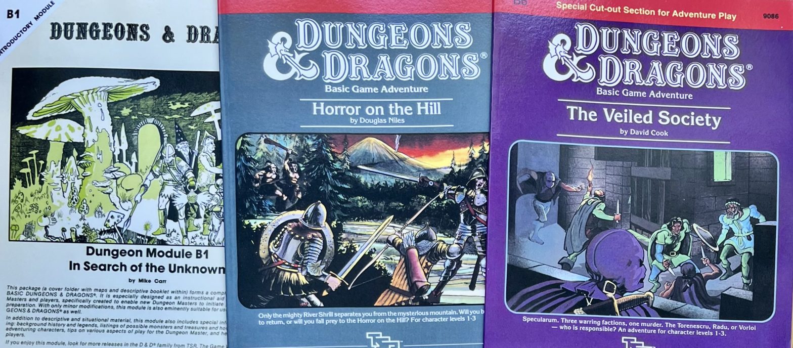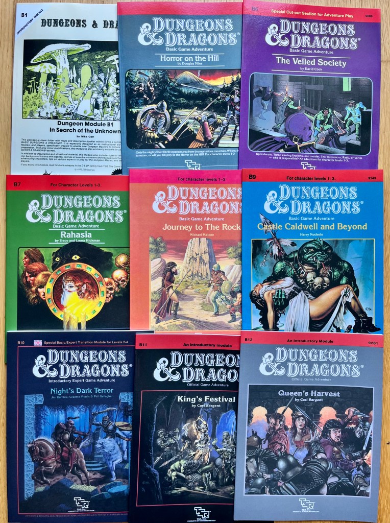 Einige Basic D&D-Module der 80er-Jahre: Hier Module der B-Reihe (die niedrigsstufigen Abenteuer)