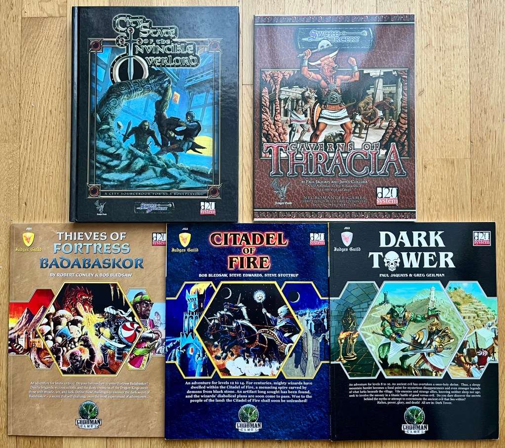 So wie Necromancer Games brachte auch Goodman Games für 3e einige Judges Guild-Klassiker-Module (Thieves of Fortress Badabaskor, Citadel of Fire und Dark Tower) für 3e neu heraus.