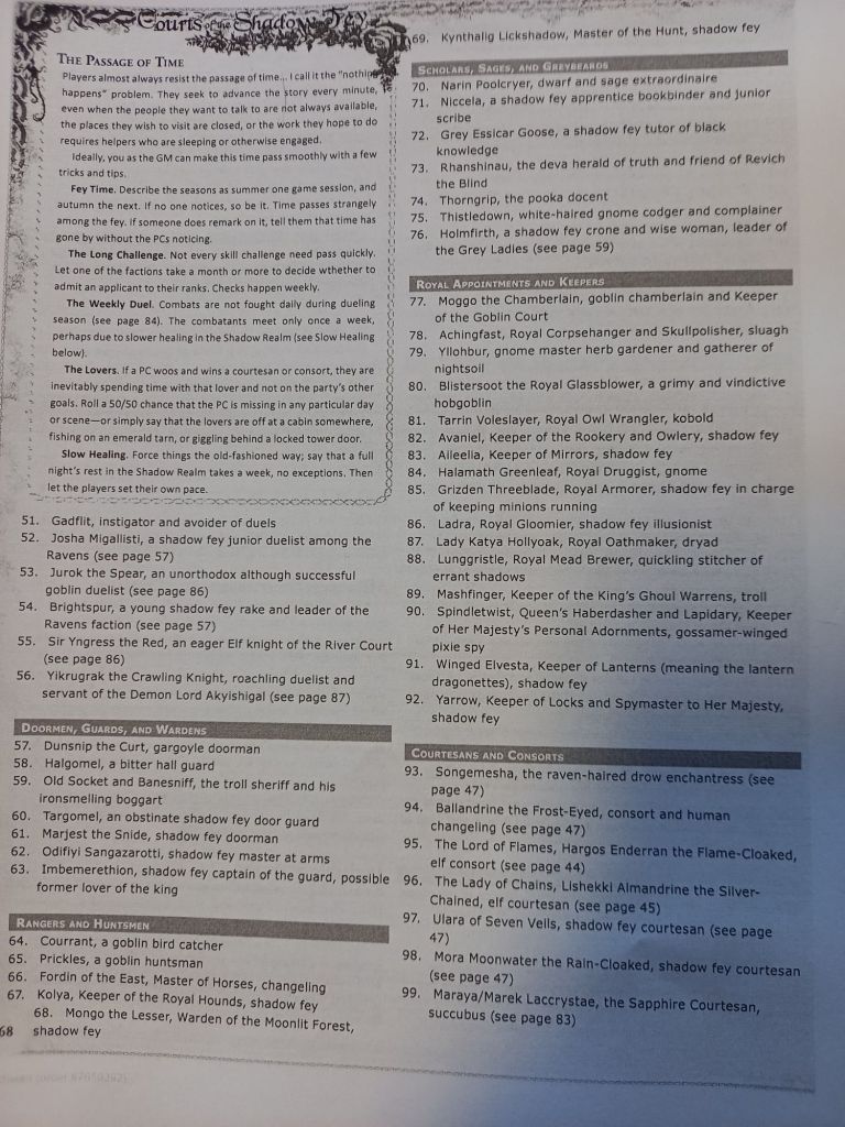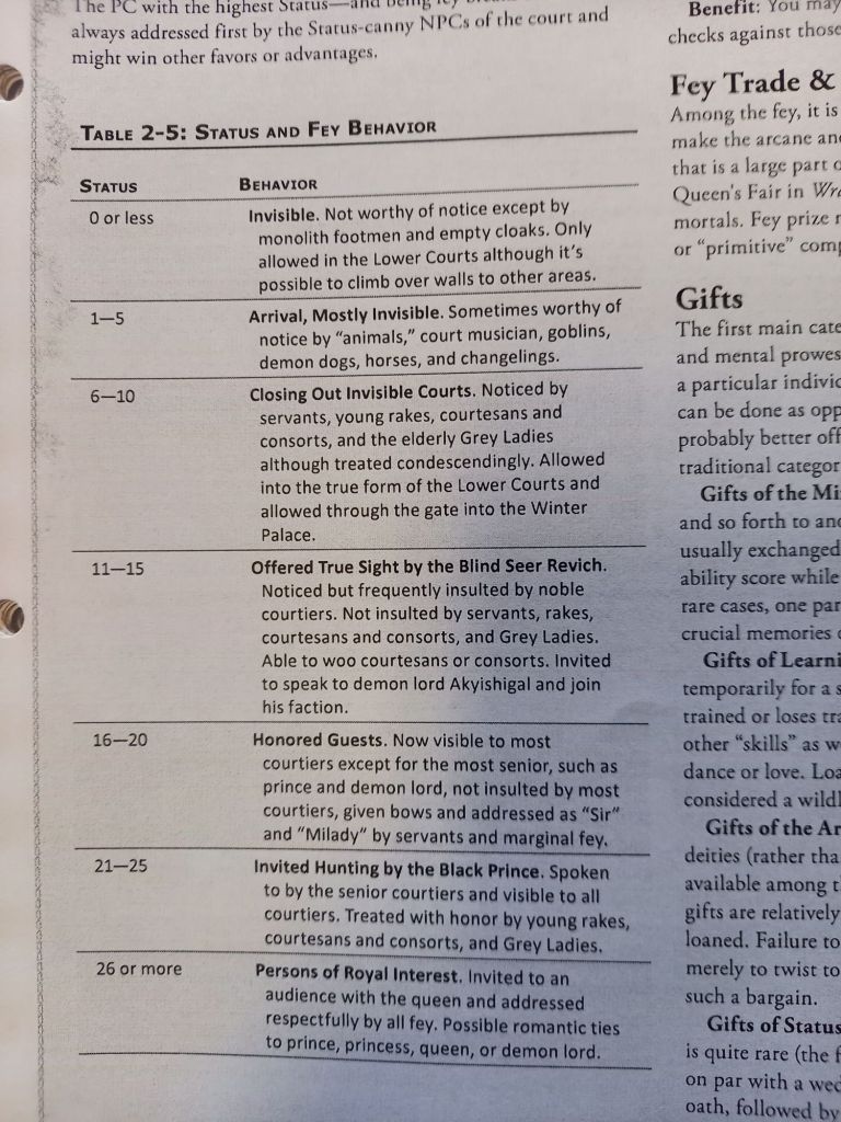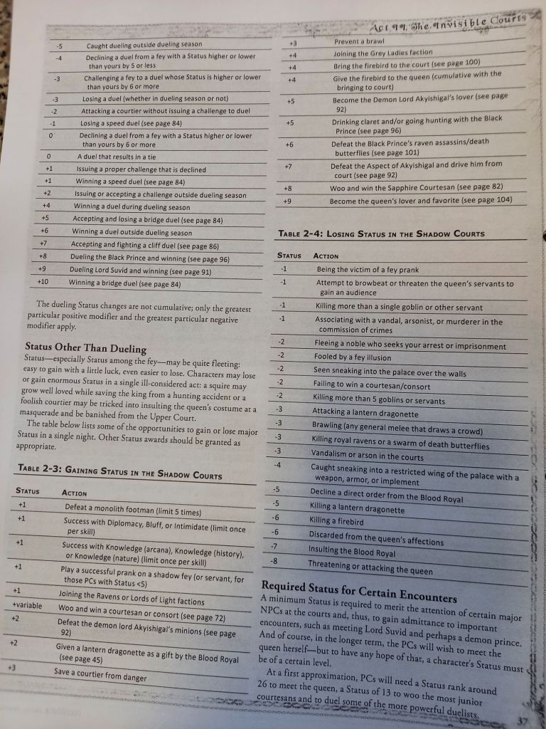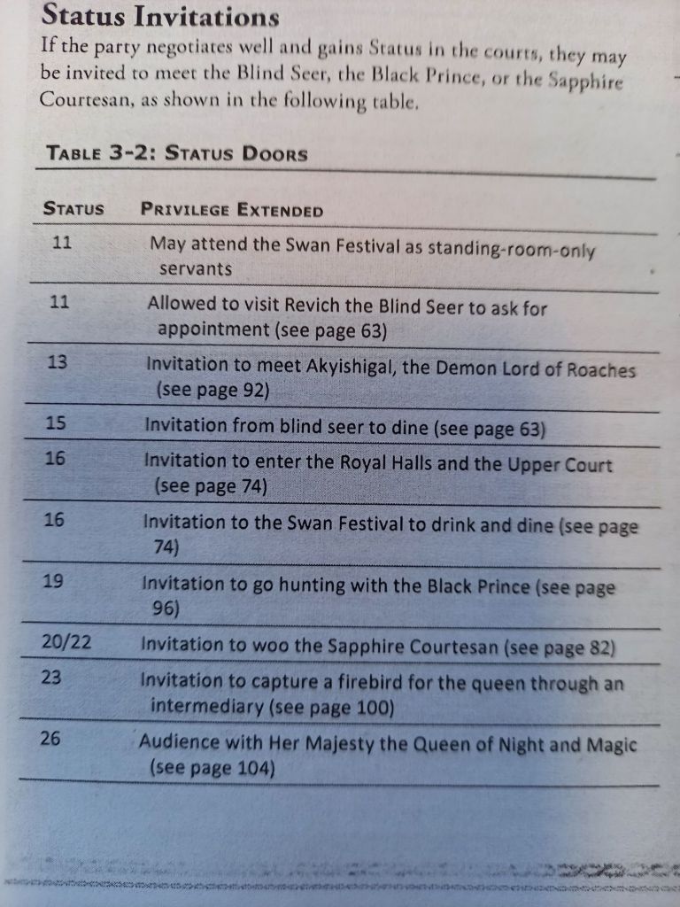 Feenwesen beachten andere Wesen erst ab einem bestimmten gesellschaftlichen Status. Niedere Wesen werden nicht beachtet, wobei dies soweit geht, dass diese unwürdigen Wesen für sich nicht existent sind. Im weiteren Verlauf konnten die Helden ihren Status erhöhen, indem sie gegen belebte Wächterrüstungen kämpften und mit dem niederen Goblinhof interagierten. Am Ende töteten sie den „König“ der Goblins und enthaupteten ihn. Mit dem abgetrennten Kopf erlangten die Spielfiguren genug Status in den Winterpalast eingelassen zu werden.