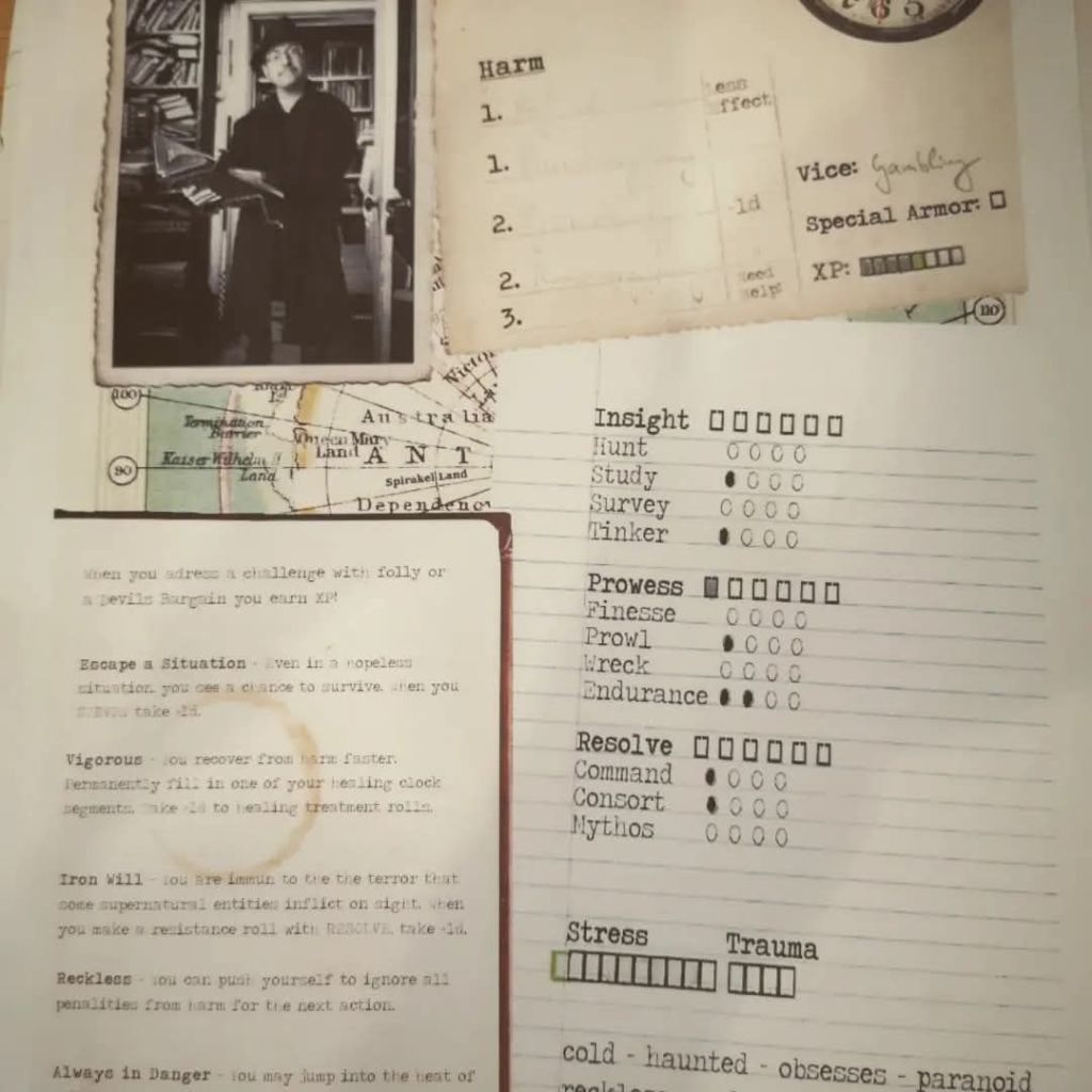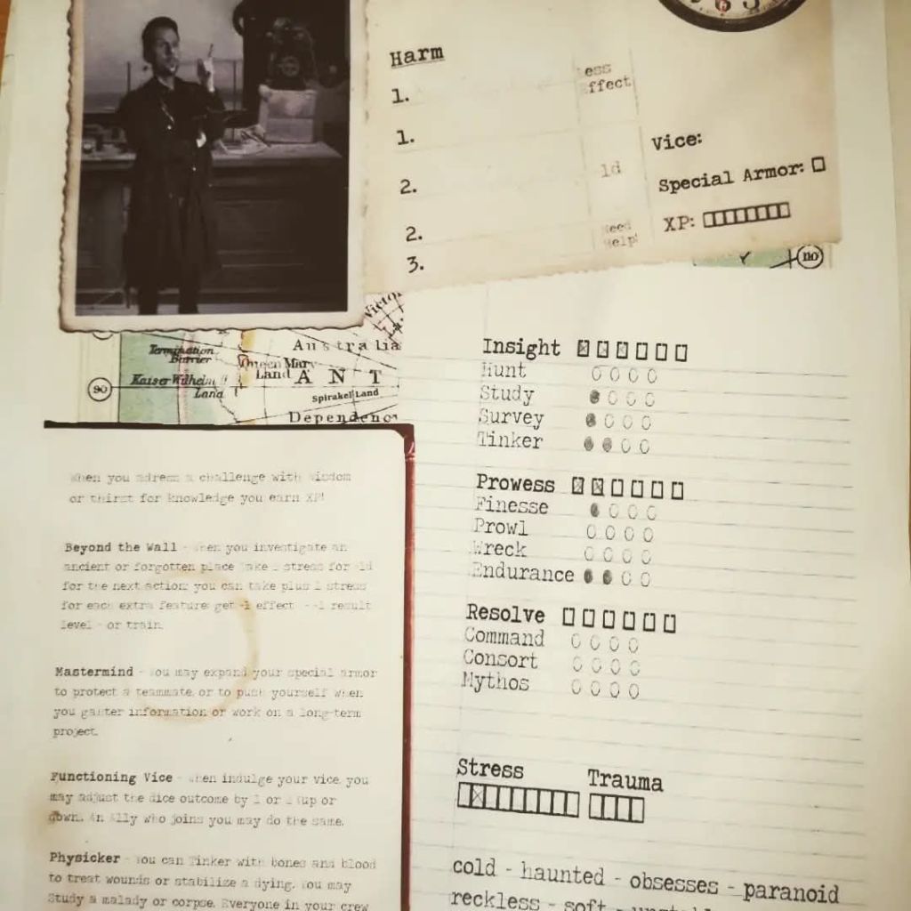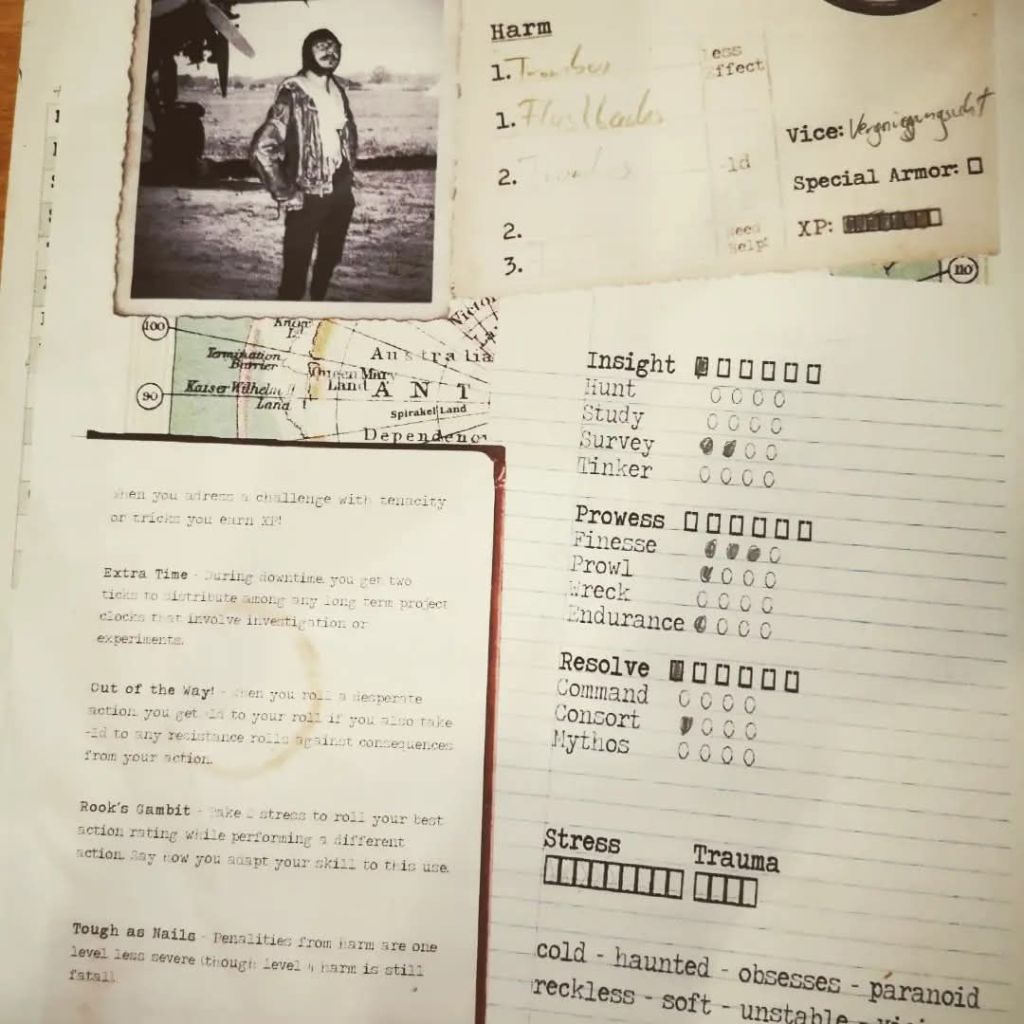 Januar 2020 kam meine Tochter als Extremfrühchen auf die Welt und veränderte alles. Das letzte Projekt waren die Berge des Wahnsinns – gespielt mit meinem Blades in the Dark – Hack namens Blades against Cthulhu. Hier die selbst erstellten Charakterbögen als nette Zeitzeugen.